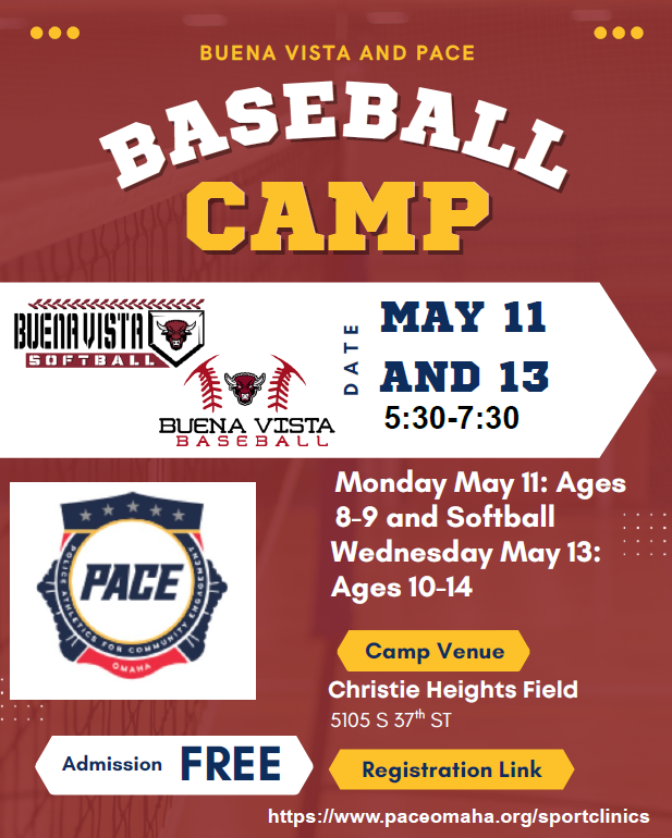PACE is partnering with Buena Vista High School to host free baseball and softball clinics this May! See flyer for full details!